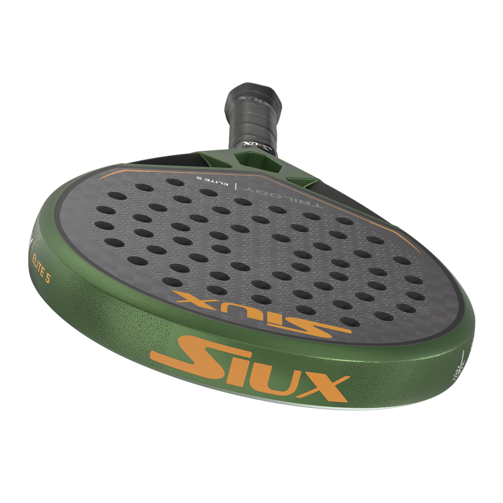 The new Siux Trilogy Elite 5 padel racket is designed for advanced players who prioritize control in their playing style. With its round shape and low balance , this racket allows for extraordinary handling and great precision on shots from the baseline, ideal for maintaining the pace of the match and wearing down opponents with consistency and placement.